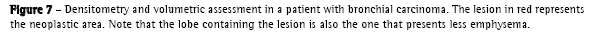 The evaluation of advantages of three-dimensional CT-guided densitometry and volumetric assessment for therapeutic decision in patients with operable pulmonary carcinoma from the point of view of tumor-node-metastasis staging is under study. However, with borderline pulmonary function. Figure 7 exemplifies a case in which the