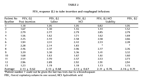 11. Ekstrom T, Tibbling L. Esophageal acid perfusion, airway function and symptoms in asthmatic patients with marked bronchial hyperreativity. Chest. 1989;96:995-8.