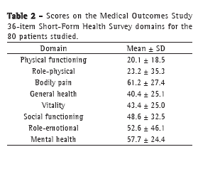 For the present study, we chose to use the Medical Outcomes Study 36-item Short-Form Health Survey (SF-36) in order to assess general aspects of the lives of the patients included, as well as to allow future comparisons with other groups of patients.