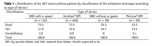The principal objective of the present study was to evaluate the use of inhaler devices by patients admitted to the ProAR referral outpatient clinic. We also attempted to determine the relationship between such use and asthma control.