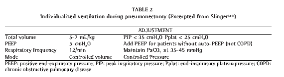 Once PPE has become entrenched, it is treated in the same fashion recommended for ARDS, maintaining adequate oxygenation, either through the use of a continuous positive airway pressure mask or through orotracheal intubation. Positive end-expiratory pressure can be used to reduce the shunt and the fraction of inspired oxygen, which, on occasion, might need to be between 80% and 100% in these patients. High peak pressure has to be avoided, thus preventing barotrauma and bronchial stump dehiscence (Table 2). In addition, nutritional support and adequate physical therapy to help clear secretions should also be provided. Diuretics are usually administered but have resulted in little clinical improvement in these patients.