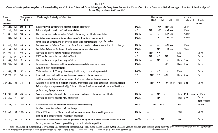 Acute pulmonary histoplasmosis in the state of Rio Grande do Sul, Brazil