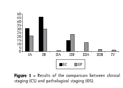 The importance of the preoperative identification of those patients who, in the PS, proved to belong to stage IV should also be stressed, since those patients did not benefit, at any time, from the surgical procedure they were submitted to.(7) In this sense, studies that determine the concordance between CS and PS are of utmost importance.