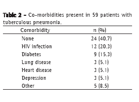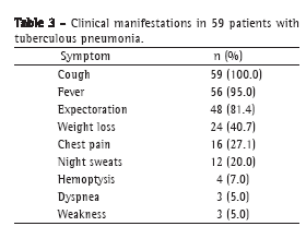 Pneumonia tuberculosa: um estudo de 59 casos confirmados microbiologicamente