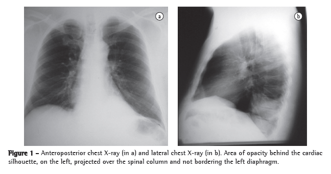 The intralobar form accounts for 75% of cases(6) and is characterized by sharing the visceral pleural membrane of the normal lung.(8) This form is rarely accompanied by other anomalies. It is most commonly located in the posterior segment of the lower lobe. In 85% of cases, intralobar sequestration is supplied by an artery arising from the infradiaphragmatic aorta.(7) Most patients are asymptomatic, living with the anomaly for years, and the diagnosis is considered during a chest X-ray. Half of the patients are diagnosed after they are 20 years of age. Respiratory symptoms are nonspecific and uncommon, and the patient can report chest pain and bronchospasm during infectious processes. In rarer cases, intralobar sequestration can present as frank hemoptysis.(9) Many times, the diagnosis is made when the anomalous region is infected, and most such patients have pneumonia.(10) Given the risk of hemoptysis and recurrent pulmonary infection, the sequestration is often removed by segmentectomy or lobectomy.(7)