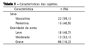 ResultadosA Tabela 1 mostra as características das 37 crianças incluídas neste estudo.
