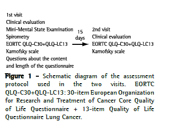 The protocol used the Brazilian Portuguese-language version of the EORTC QLQ-C30+QLQ-LC13 provided by the research group on quality of life of the EORTC, responsible for the development of the questionnaire, and followed the methods used for assessing reproducibility and for cross-cultural adaptation of other instruments in Brazil.(7,21-23)