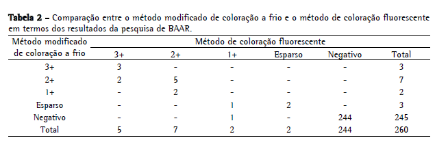 O objetivo do presente estudo foi avaliar comparativamente a eficácia diagnóstica desses três métodos de coloração a frio na detecção de BAAR.