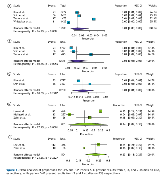 Several instances of elevated heterogeneity were observed across our analyses, particularly in the meta-analyses of proportions. Initial pooled prevalence estimates for CPA and PJP showed substantial heterogeneity (I² > 90%), which was mitigated through subgroup analyses and stepwise exclusion of outlier studies. Residual high heterogeneity was mainly confined to descriptive variables, such as sex distribution and the proportion of lobectomy among CPA patients. While informative, these were not central to our clinical interpretations.