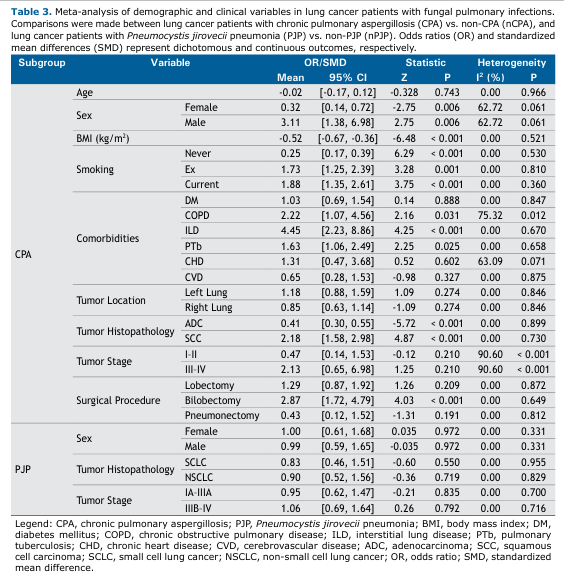 Meta-Analysis of Clinical Predictors of CPA and PJP in Lung Cancer Patients