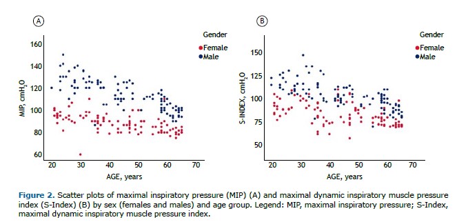 DISCUSSION This study introduces the first sex-specific reference equation for calculating the S-Index (cmH2O) in healthy Brazilian adults using a standardized method.(21) The S-Index test involves maximal, fast, and forceful inspirations from residual volume to total inspiratory capacity,(6,7) and may offer a more functional assessment of inspiratory muscle strength than traditional static measurements, such as MIP, due to its use of dynamic maneuvers. The S-Index was measured using validated PowerBreathe® devices,(5,7,9,10-14,26,27) and the test-retest reliability was shown to be excellent,(4,8) supporting its application in both healthy individuals and patients.(4,5,7,8,10–14)