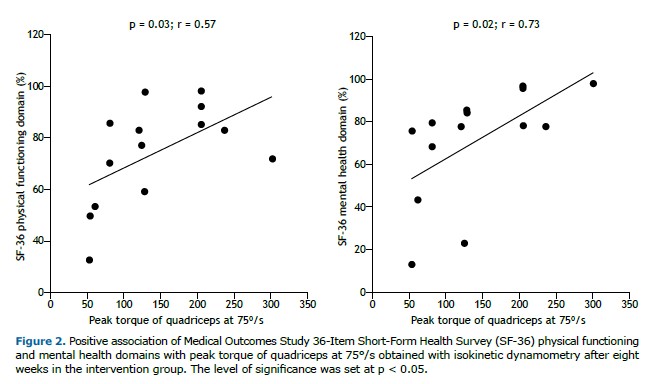 There have been no studies examining the use of isokinetic dynamometry as the primary tool for objectively assessing changes in physical capacity in patients with PTLD.(29) However, one study demonstrated the effectiveness of this assessment method in more than 3,000 participants with COPD. (37) In our study, the sensitivity and applicability of isokinetic dynamometry were evident, highlighting muscle strength and fatigue (peak torque on knee extension) as key outcomes in the initial assessment and their improvement when we compared pre- and post-intervention measurements, as well as their association with perceived QoL.