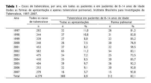 A tuberculose é um problema de saúde significativo no Brasil, país que foi classificado como um dos vinte países do mundo com as maiores taxas de incidência da doença. Em 2009, o Programa Nacional de Controle da Tuberculose relatou 85.000 casos de tuberculose (aproximadamente 45 casos por 100.000 habitantes) à Organização Mundial da Saúde (OMS).(1) Entre 2005 e 2009, a incidência diminuiu 2,9% por ano.(1) No Brasil, 7% dos casos relatados afetaram crianças ou adolescentes (0-14 anos de idade); no estado da Bahia,(2) estima-se que essa proporção seja ainda maior, com 15-20% dos casos afetando crianças ou adolescentes.(3) Devido à dificuldade do diagnóstico, acredita-se que se trata de uma subestimativa da real prevalência da tuberculose. O diagnóstico é complexo, pois muitas vezes os resultados para BAAR são negativos.(4)