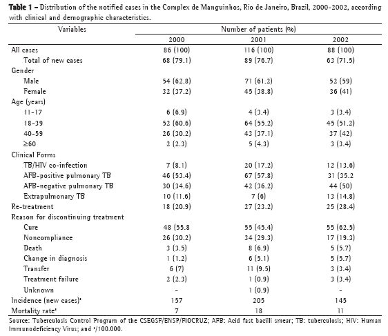 Um estudo retrospectivo dos aspectos epidemiológicos da tuberculose na comunidade do Complexo de Manguinhos localizado em área urbana do Rio de Janeiro, Brasil, 2000‑2002