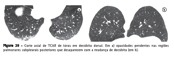 Opacidade pendenteOpacidade subpleural em regiões pulmonares pendentes, que correspondem a áreas de atelectasia decorrente do decúbito. Ocorre nas regiões posteriores quando o paciente encontra-se em decúbito dorsal
