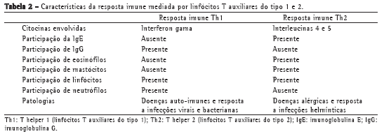 Resposta imune nas doenças alérgicas e nas infecções helmínticasUma das funções do sistema imunológico é proteger o indivíduo contra agentes infecciosos. Entretanto, o funcionamento inadequado deste sistema pode ser a causa de doenças, como as alergias e as doenças auto-imunes. O sistema imunológico atua por meio de dois padrões de resposta imune adquirida: a resposta imune mediada por linfócitos T auxiliares do tipo 1 (T helper 1, Th1, em inglês), e a resposta imune Th2. A resposta imune Th1 ocorre na reação às infecções virais e bacterianas e nas doenças auto-imunes. A resposta imune Th2 ocorre na reação às infecções helmínticas e nas doenças alérgicas, como a asma, a rinite e o eczema.
