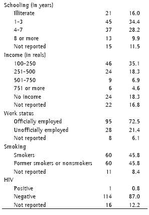 Regarding work status, most of the patients held some sort of low income job, in contrast to the findings of the study conducted in Pelotas, in which 60.5% of the individuals evaluated were unemployed.(17)