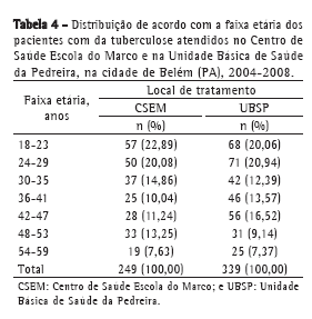 Não houve diferenças estatisticamente significantes entre os pacientes das duas UBS estudadas em relação ao sexo, idade e associação com HIV (Tabelas 3, 4 e 5).