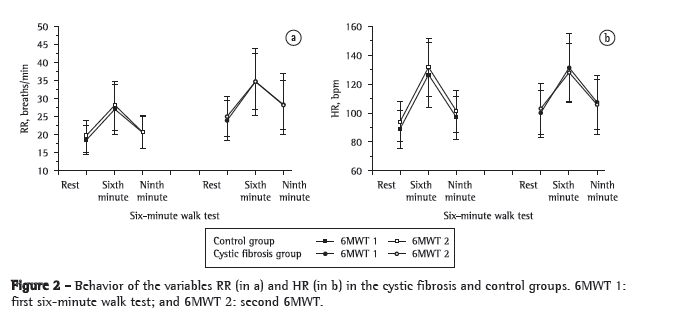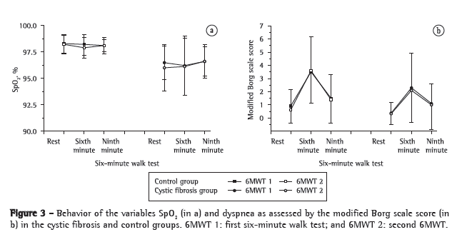 DiscussionThe search for inexpensive, user-friendly tools for the assessment and monitoring of chronic pulmonary diseases is a recent concern in the international literature. In our study, the 6MWD was shorter among the individuals with cystic fibrosis than among the healthy individuals. To date, there have been only six studies comparing cystic fibrosis patients and controls in terms of their performance on the 6MWT; only three of those studies have reported mean ages close to those of our sample.