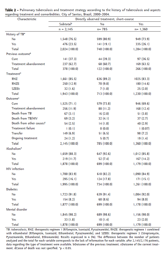 Treatment outcomes indicate the obstacles faced by the program; however, such outcomes are similar to those observed, on average, in Brazil as a whole,(22) suggesting that the more severe conditions of TB in Santos are not related exclusively to the performance of the program in the city.