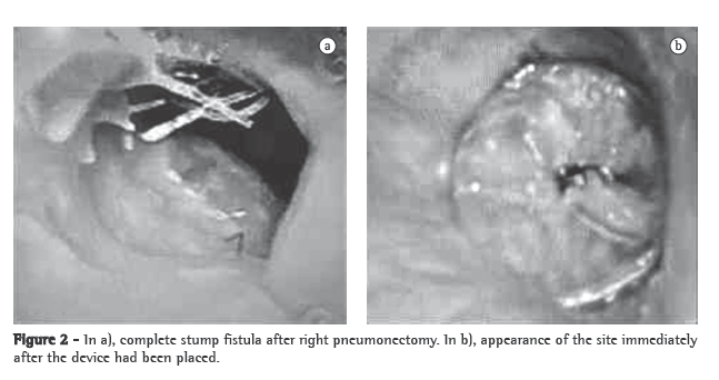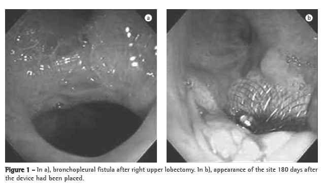 A recent study described the closure of a 5-mm bronchopleural fistula by means of a device used in the treatment of heart septal defects.(13)