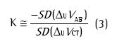 where K estimates the relative contribution of the electrical signals related to the rib cage (∆UVCT) and abdomen (∆UVAB), the signals being uncalibrated (U).(2-7)