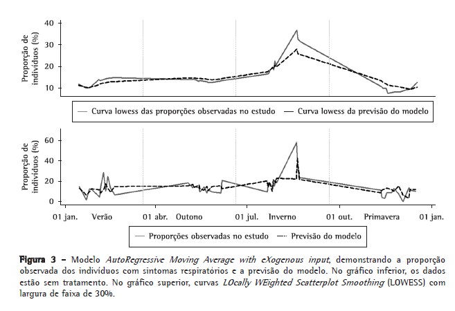Foram documentados vários efeitos da sazonalidade climática em saúde pública em áreas de clima temperado e subtropical,(4-8) mas as relações entre a saúde e o clima ainda não são bem entendidas.(9) Alguns trabalhos encontraram uma conexão entre temperatura ou umidade e o aumento na proporção de doenças respiratórias; entretanto, esses estudos foram baseados em dados secundários, sujeitos a vieses, o que causa preocupação quanto a sua validade e confiabilidade metodológicas.(10-17)