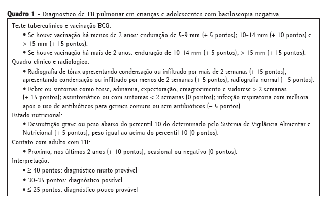 11. Maciel EL, Dietze R, Silva RE, Hadad DJ, Struchiner CJ. Evaluation of a scoring system recommended by the Brazilian Ministry of Health for the diagnosis of childhood tuberculosis [Article in Portuguese]. Cad Saúde Pública. 2008;24(2):402-8.