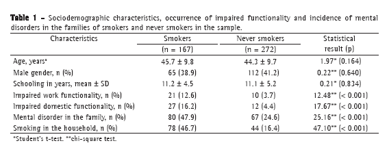 We found that impaired work/domestic functionality was more common in smokers than in never smokers. These data are similar to those obtained in previous studies, in which cigarette consumption was associated with premature death from chronic disease, economic losses for society and substantial overload of health care systems.(15)